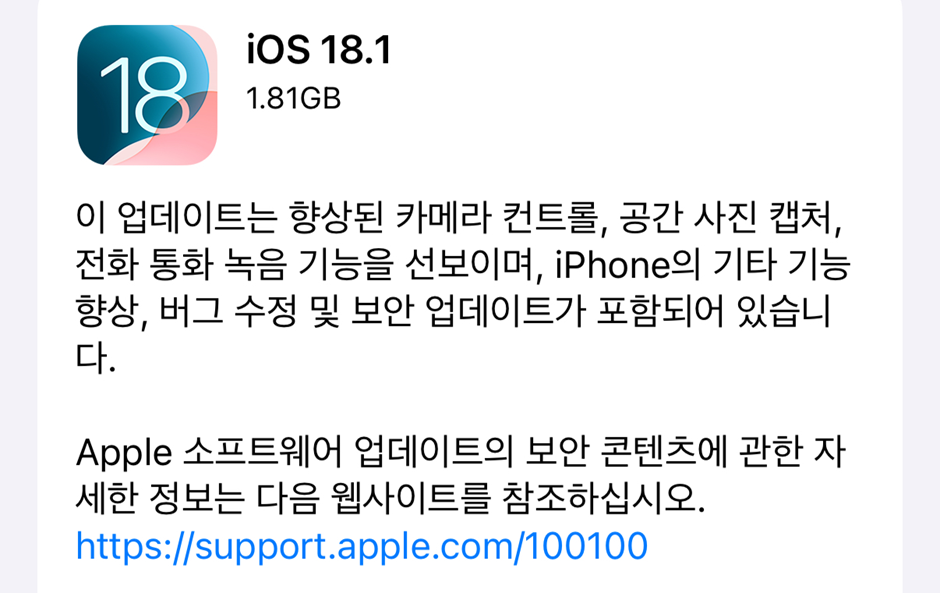 태그: #IOS18_1 #애플 #모바일업데이트 #AI인텔리전스 #통화녹음 #카메라기능 #보안업데이트