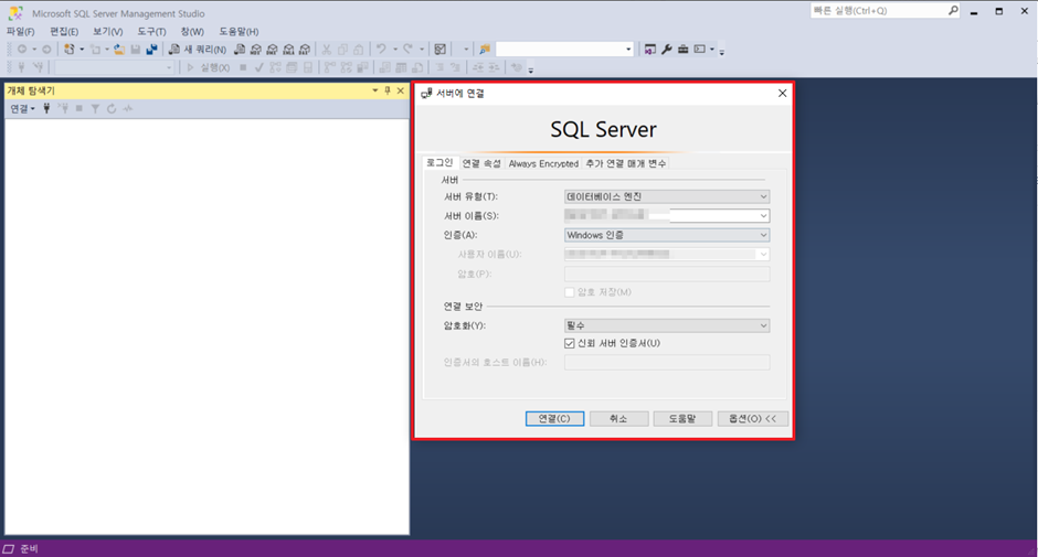 - 설치 완료 : 설치가 완료되면 SQL Server Management Studio(SSMS)를 통해 데이터베이스에 접근할 수 있습니다.